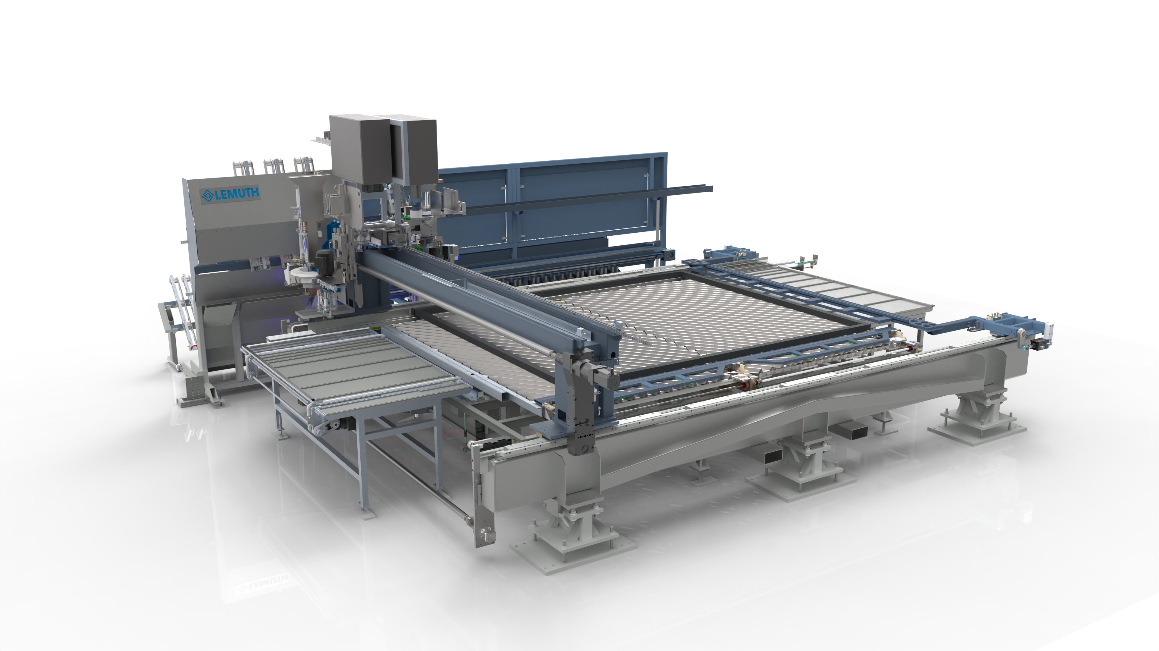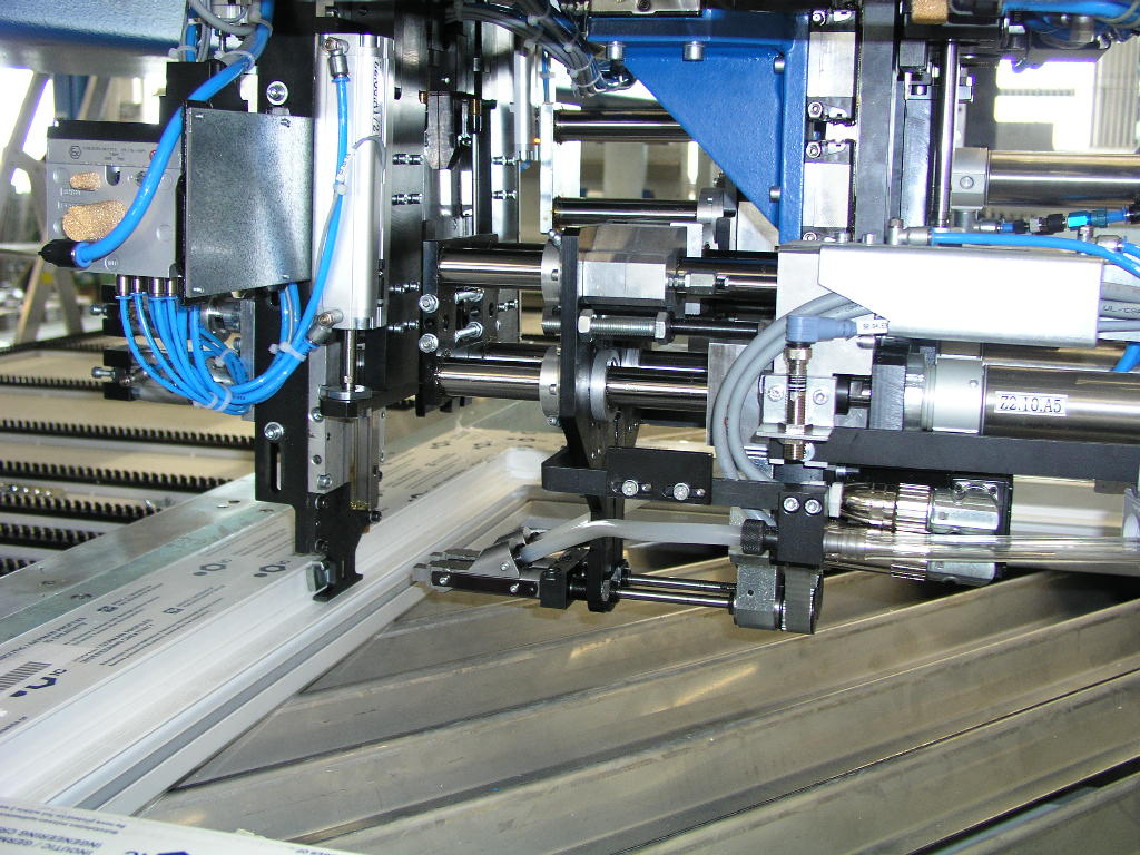 Hochgenaue NC-Positioniereinrichtungen sorgen für das exakte Anfahren sämtlicher Bearbeitungsstellen am Rahmen. Nach dem Anfahren der Anschlagpositionen erfolgt die Montage der Teile einschließlich aller erforderlichen Arbeitsgänge wie Setzen und Verschrauben der Beschläge. Die Zustellung verschiedener Schraubanlagen zu den Montagesitzen erfolgt mit Servoantrieb.
