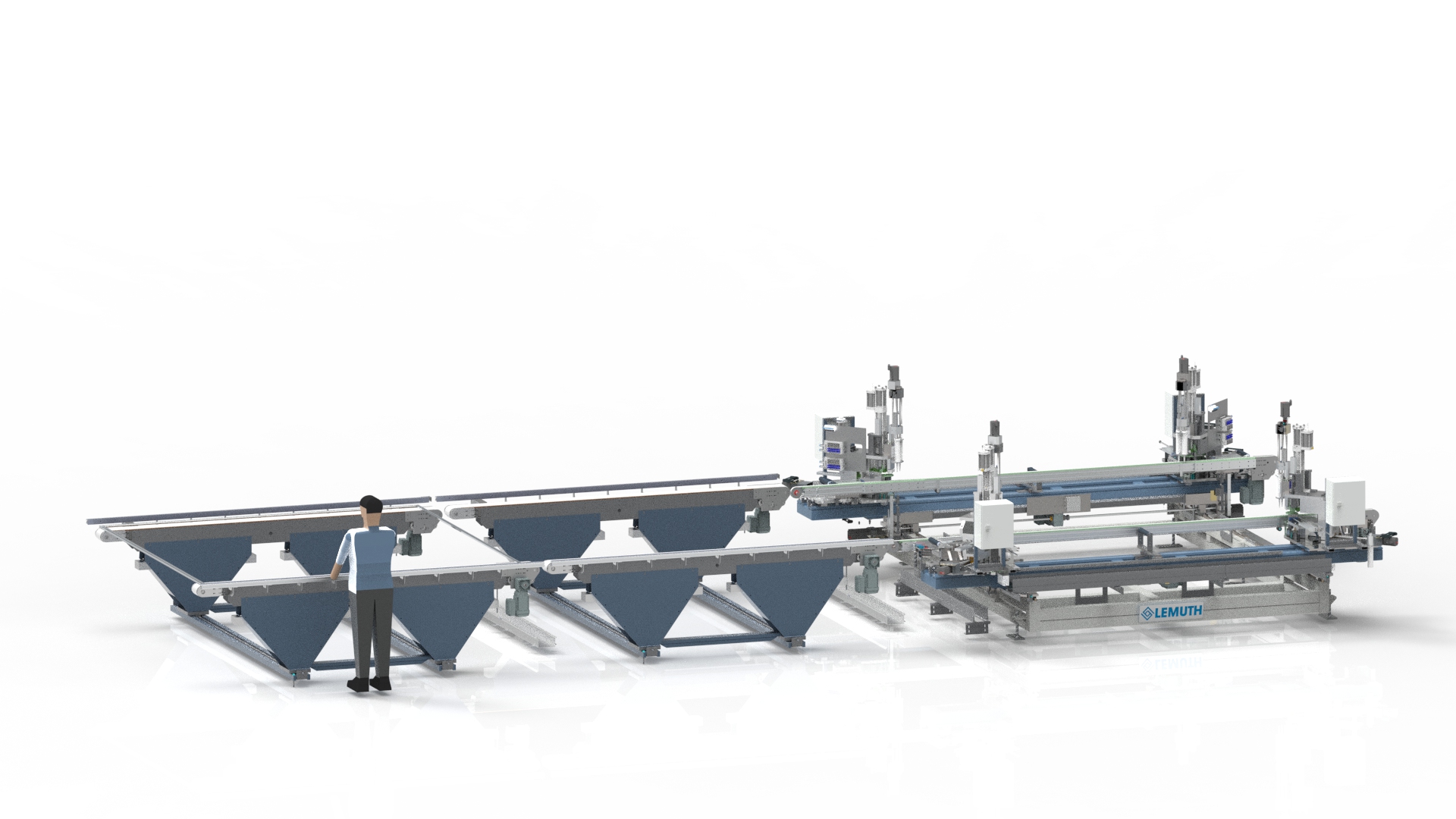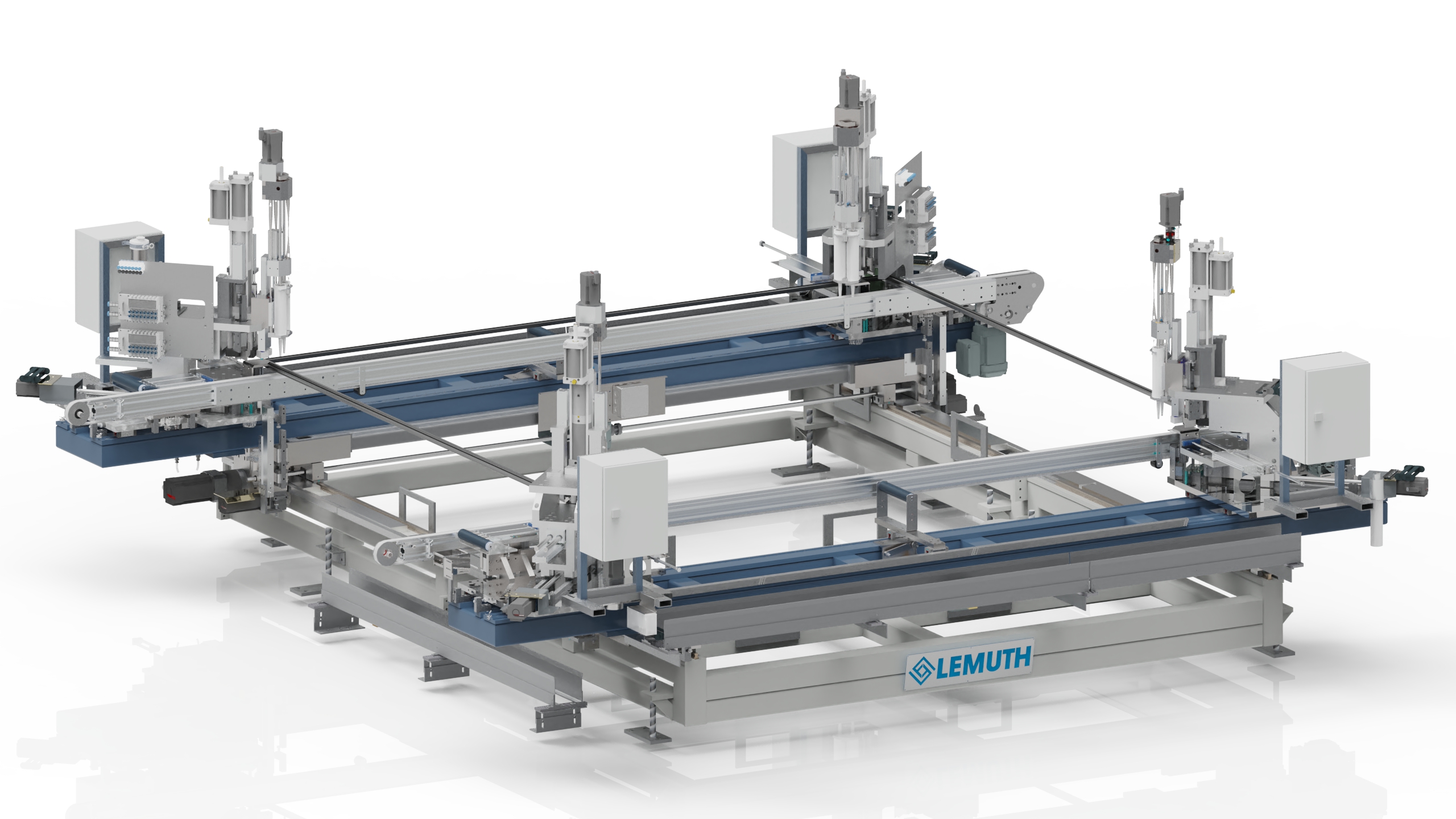 Bei dem seitlichen Eckencrimpen werden die Eckwinkel seitlich von außen vercrimpt. Diese Variante eignet sich für Profile, bei denen die Eckwinkel in eine Kammer eingeschoben werden, wie z.B. bei Fenster- und Türprofilen aus Aluminium. Das seitliche Vercrimpen ist durch servogesteuerte Höhenachsen in verschiedenen Höhen möglich.