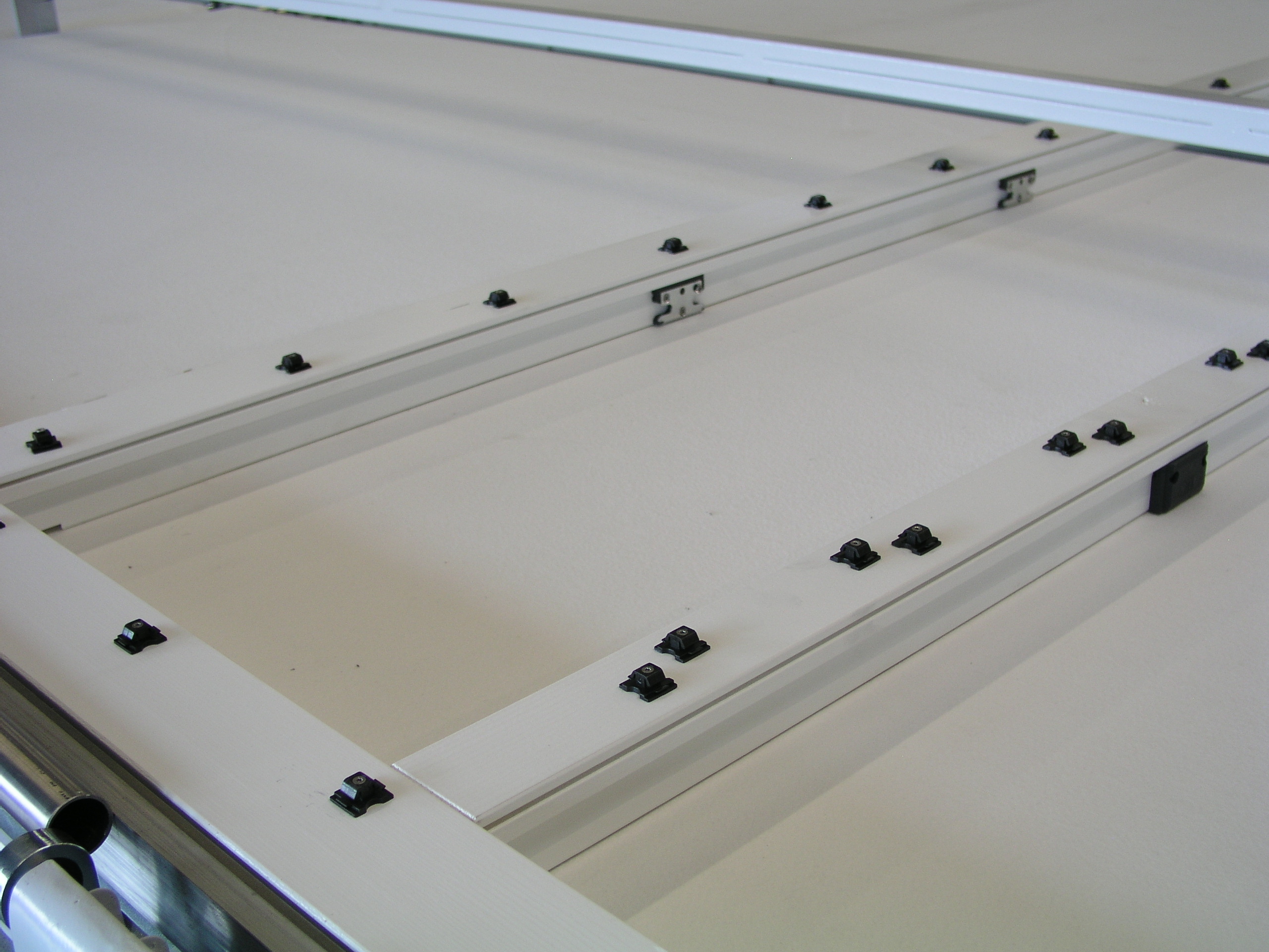 An der Übergabestation nimmt der Montagekopf alle zu montierende Klipse für das zu bearbeitende Element mit einmal auf. Gleichzeitig wird der Rahmen über filzbeschichtete Bänder eintransportiert und gespannt. Der Montagekopf positioniert sich an dem jeweiligen Schenkel und setzt die Klipse auf. Die Anzahl der gleichzeitig montierbaren Klipse ist abhängig von der Anzahl der Setzeinheiten und bestimmt somit die Taktzeit.
